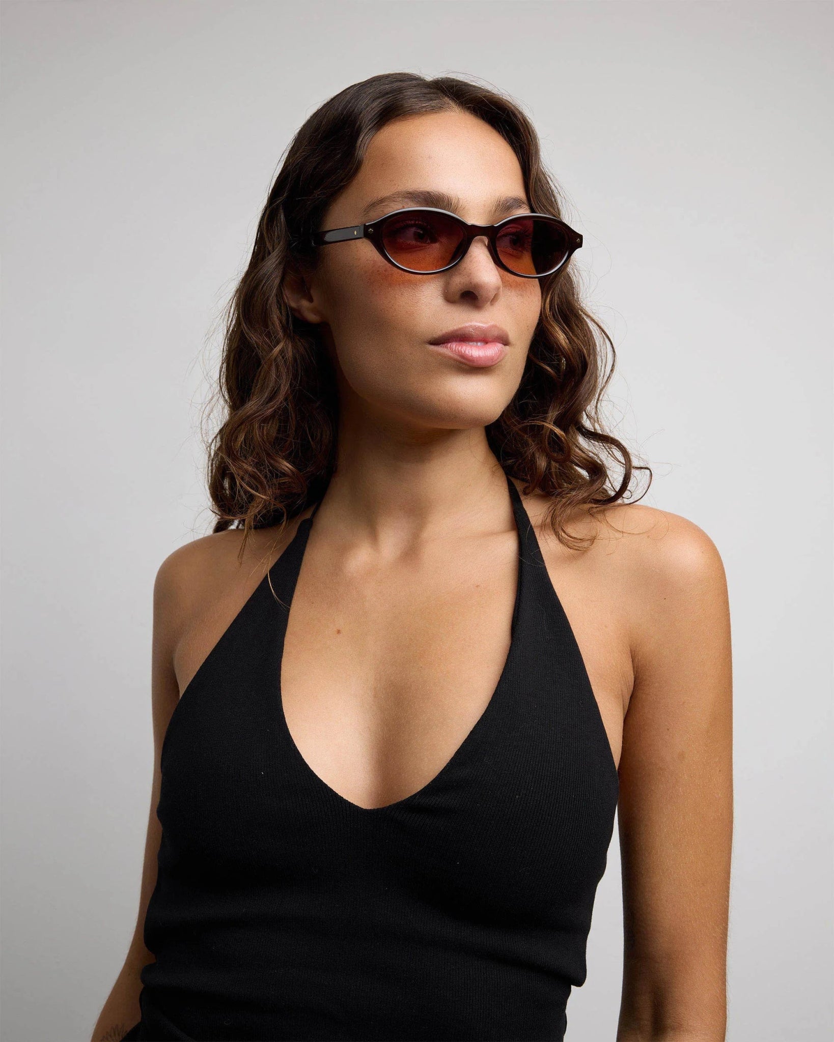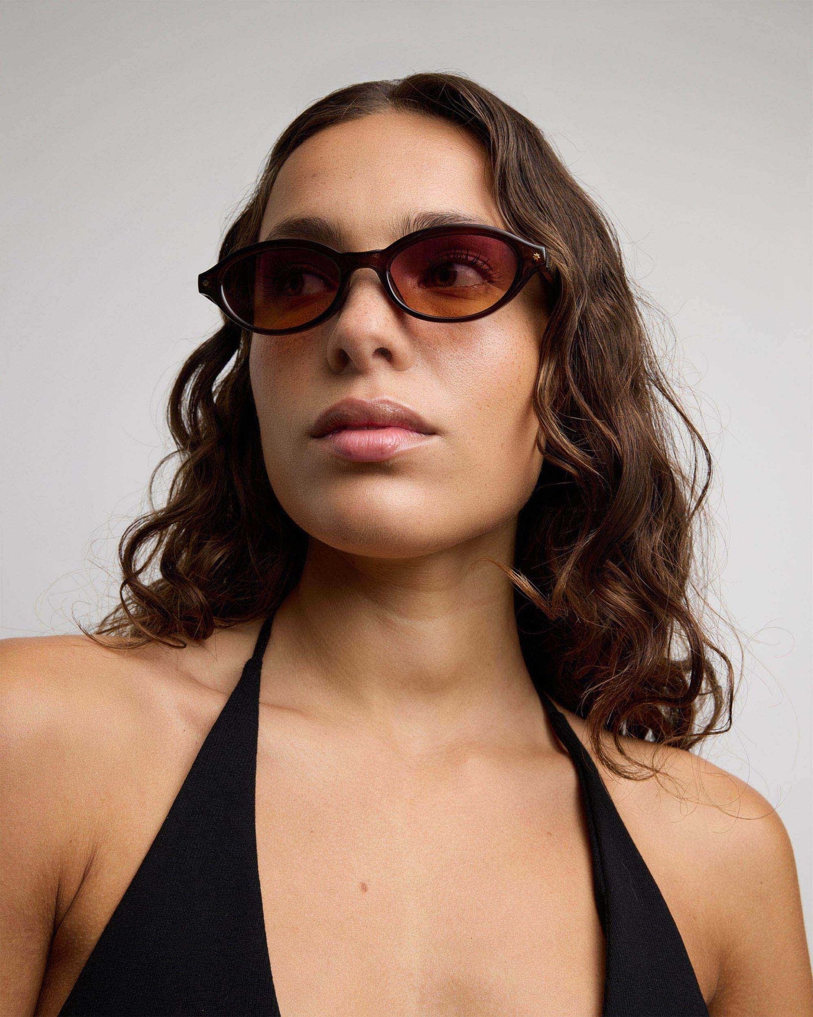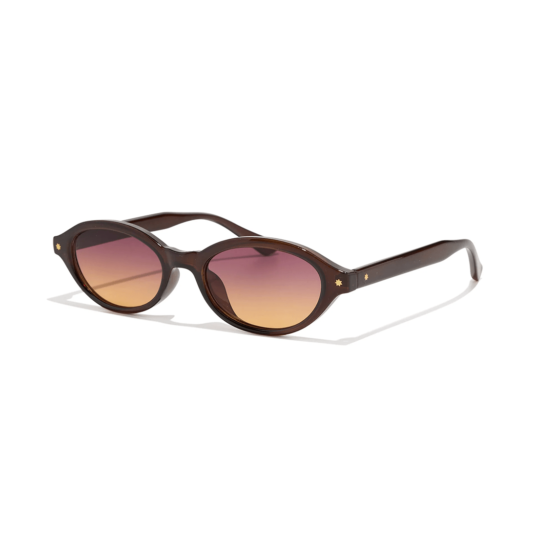 Meet NOLAN; librarian chic meets office siren realness… szade's slick take on a retro inspired oval sunglass. with all the design elements and proportions of a classic silhouette found in eyewear archives to the modern touches, this mocha sunglass with coloured lenses is timeless for today.