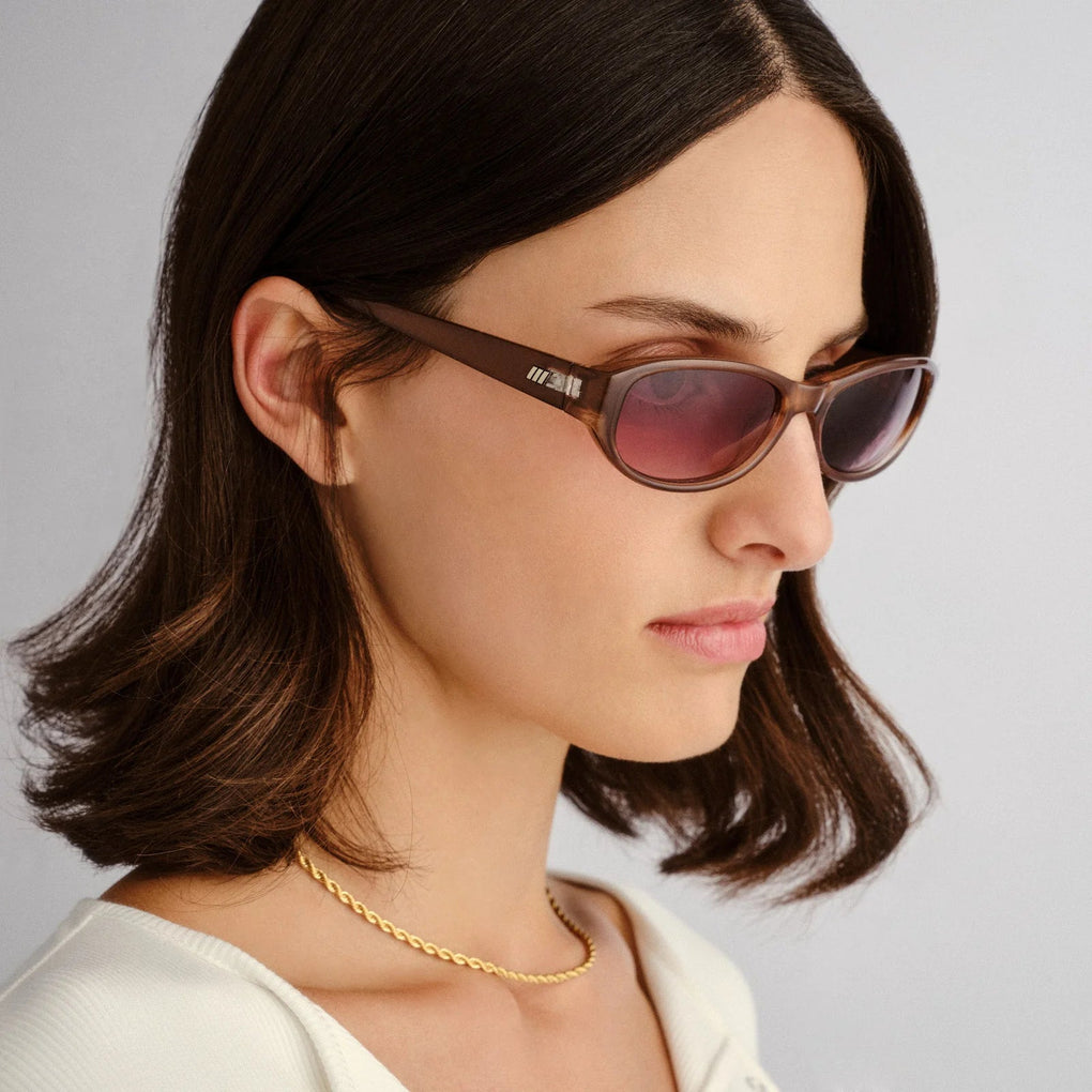 Add a touch of nostalgia to any outfit with our early 90s inspired Don't Cha slimline oval sunglasses. Designed with a sleek, exaggerated frame and wider fit for all faces, these frames feature a slightly wrapped profile and are finished with discreet signature Le Specs metal hardware on both temples.
