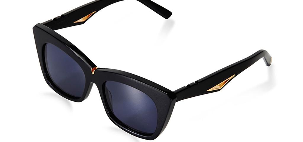 A squared off cat eye & feminine style, the Short & Sharp compliments most face shapes and comes complete with gold metal inlay at front and temple. Handmade acetate front & temple with gold metal detailing. Designed in Australia.