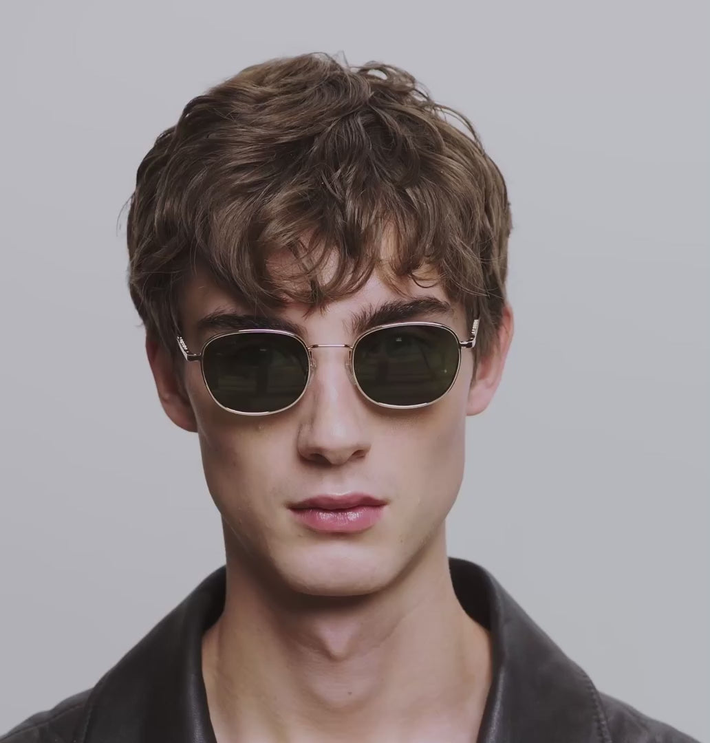 A reinterpretation of Hello. Inspired by 60s Hollywood with square lenses in a sleek metal frame that frames the face in a distinctive yet timeless way. Classic movie star vibe.