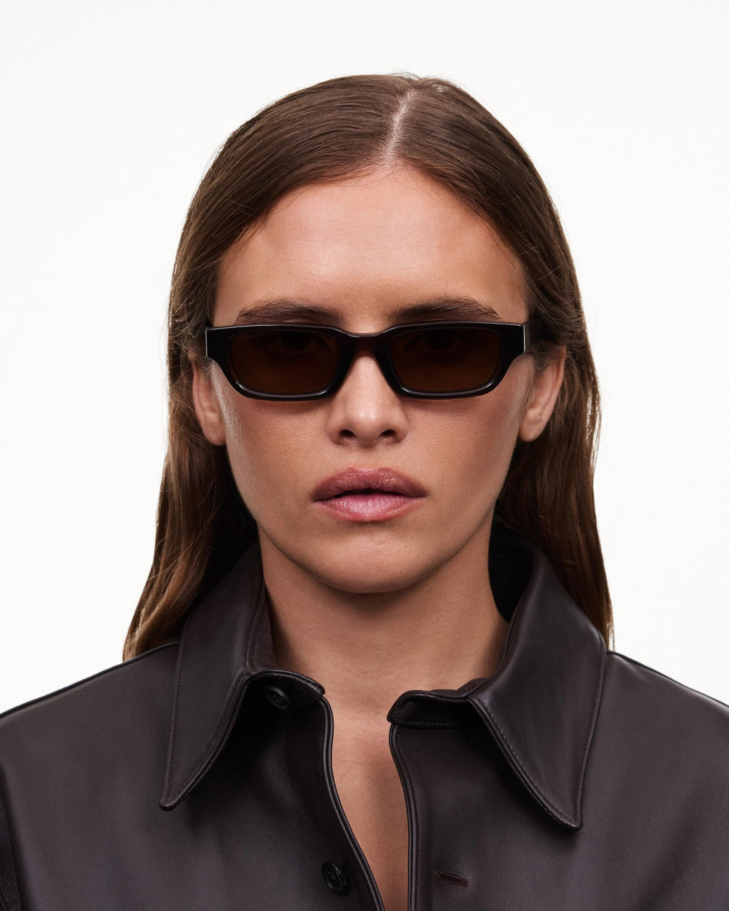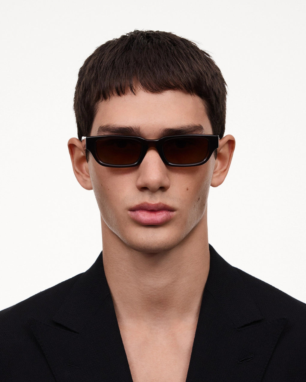 10 is a slim rectangular silhouette, creating a sharp look with a low-slung profile sitting comfortably on the bridge of the nose. Fitted with UV-protective CR39 lenses.