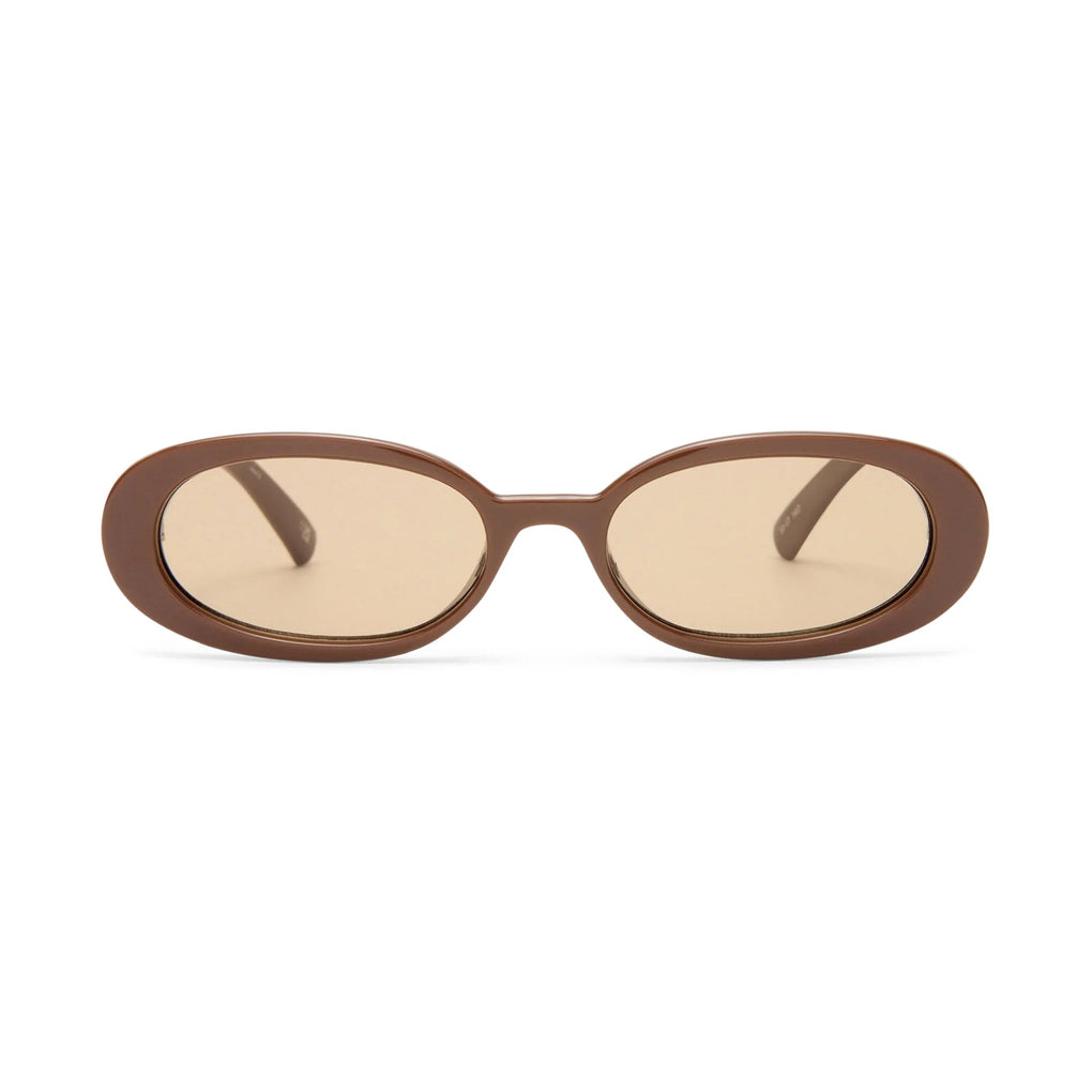 Exuding '90s confidence, the iconic Outta Love silhouette offers a minimal nineties look. This petite, slimline oval silhouette features a modern flat profile and signature Le Specs gold metal hardware, and is just the right size to complement your face without hiding your best features.