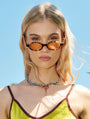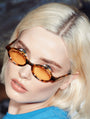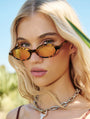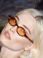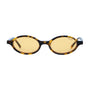 A petite oval frame featuring inner gold metal detailing paired with a yellow tortoiseshell acetate frame and yellow CAT 1 UV-protected lenses.
