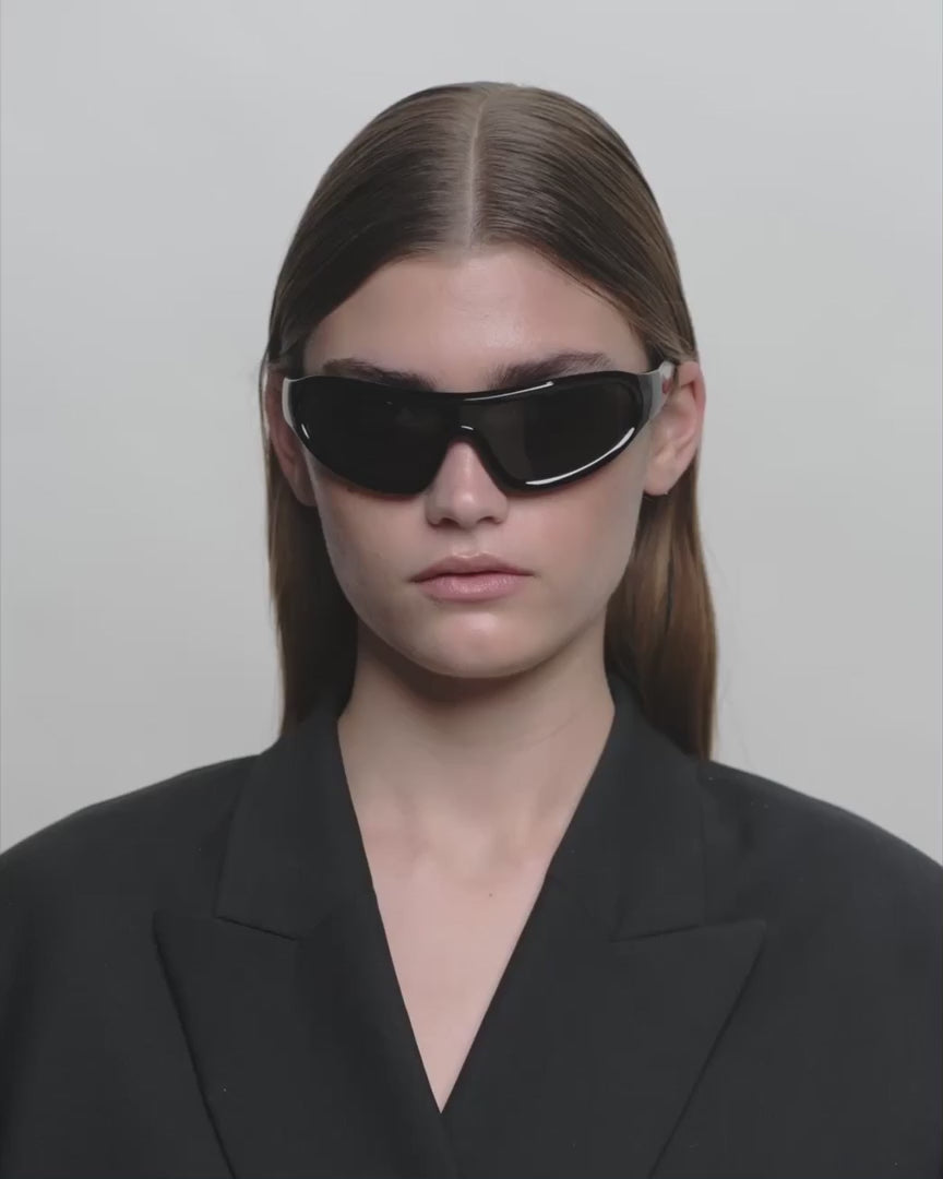Devon - is a distinctive wraparound model with a sporty retro look. The curved design follows the face and combines fashion and function. A statement sunglass for active days and an urban everyday look.