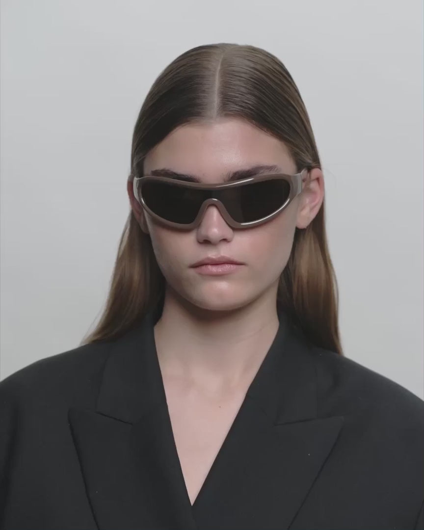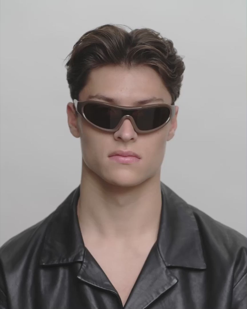 Devon - is a distinctive wraparound model with a sporty retro look. The curved design follows the face and combines fashion and function. A statement sunglass for active days and an urban everyday look.